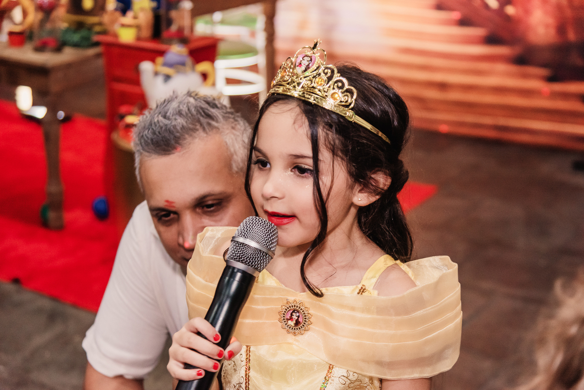 Ela comemorou seus 5 aninhos com uma festa incrível, teve até a presença ilustre da Bela e a Fera!